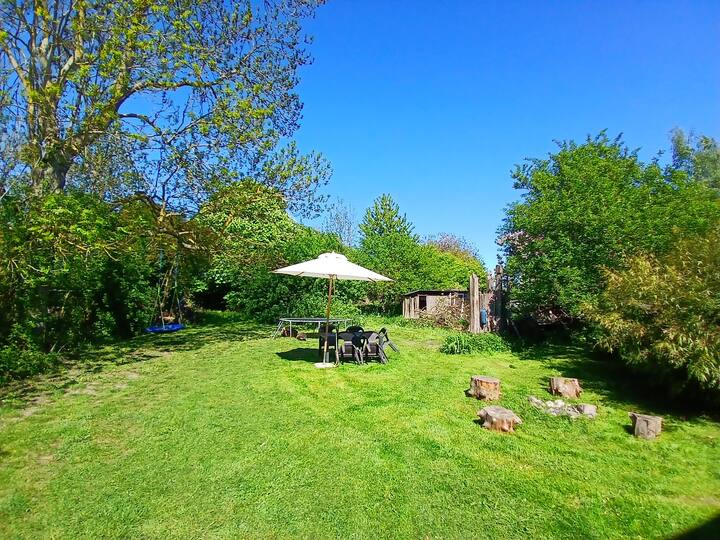 einen großen Garten nur für Euch, mit Spinnnetzschaukel,Trampolin,Esstisch